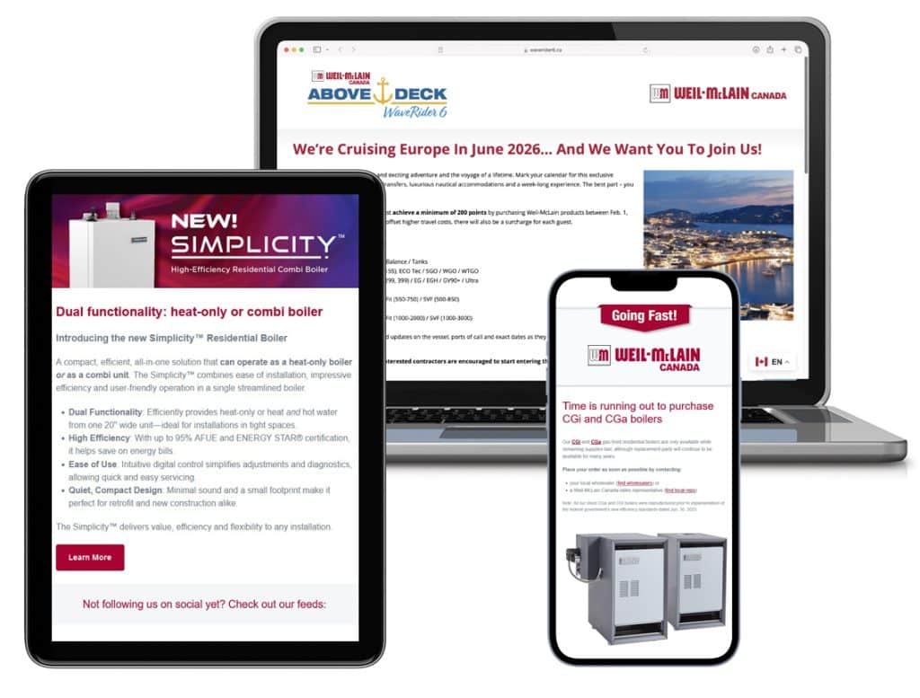 We’ve got great news! Sign up for our eBulletins and receive the latest information on Weil-McLain Canada products, promotions, staffing, and tradeshow announcements, as well as general hydronic industry news. You can unsubscribe at any time.